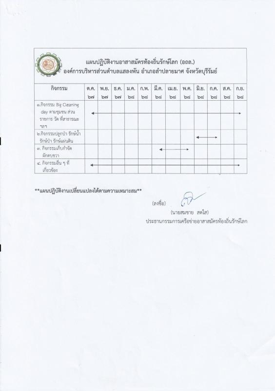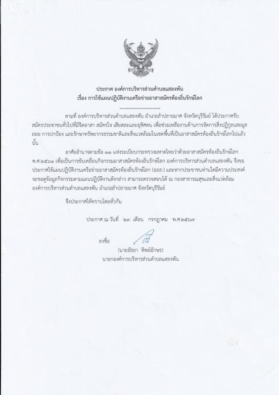 ประกาศการใช้แผนปฏิบัติงานเครือข่ายอาสาสมัครท้องถิ่นรักษ์โลก